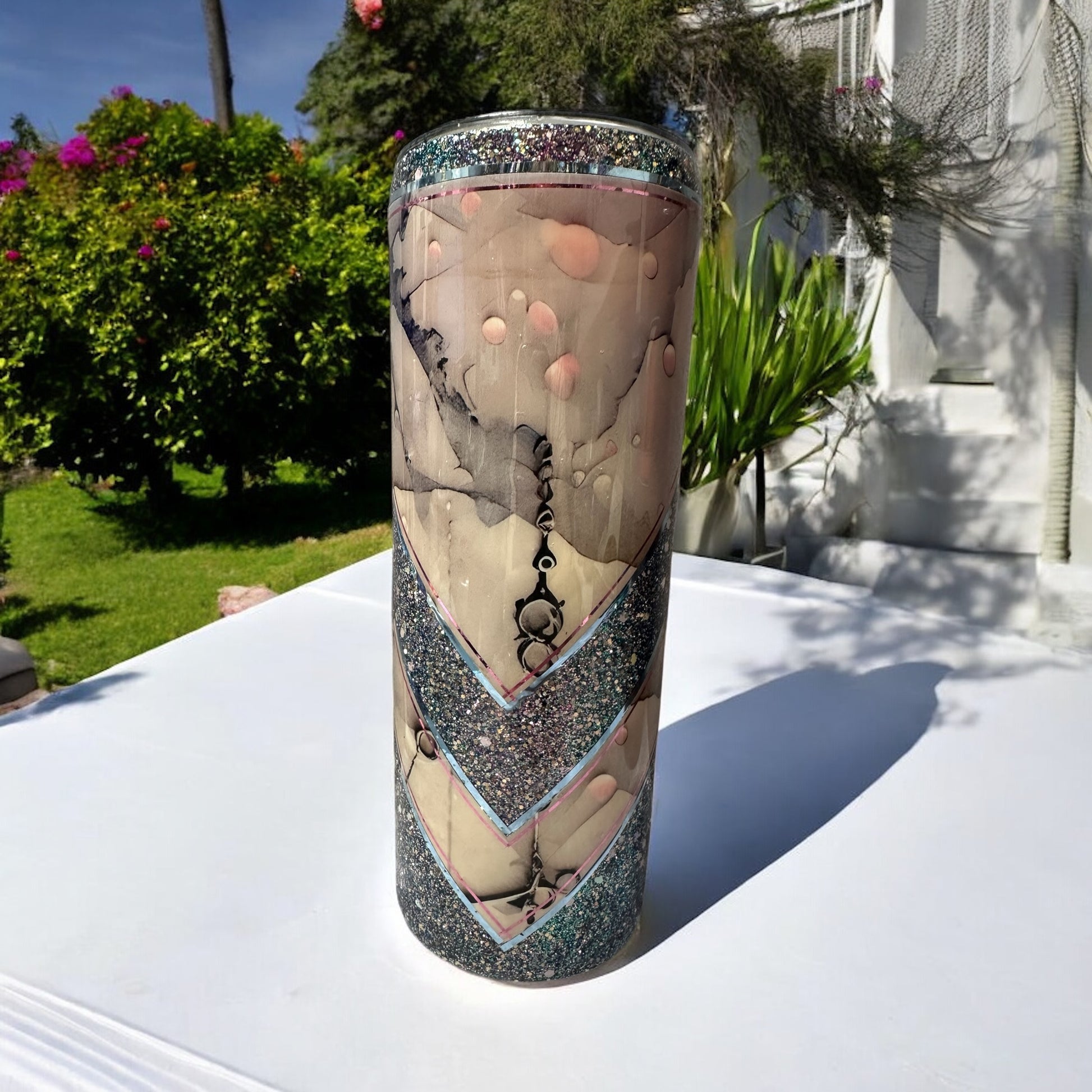This 20 oz tumbler features a sophisticated dusty rose base accented with shimmering purple glitter, creating a stylish and eye-catching design. Crafted for durability and ease of use, it keeps your beverages at the ideal temperature while adding a touch of elegance to your daily routine. Perfect for both hot and cold drinks, this tumbler combines functionality with a refined aesthetic.