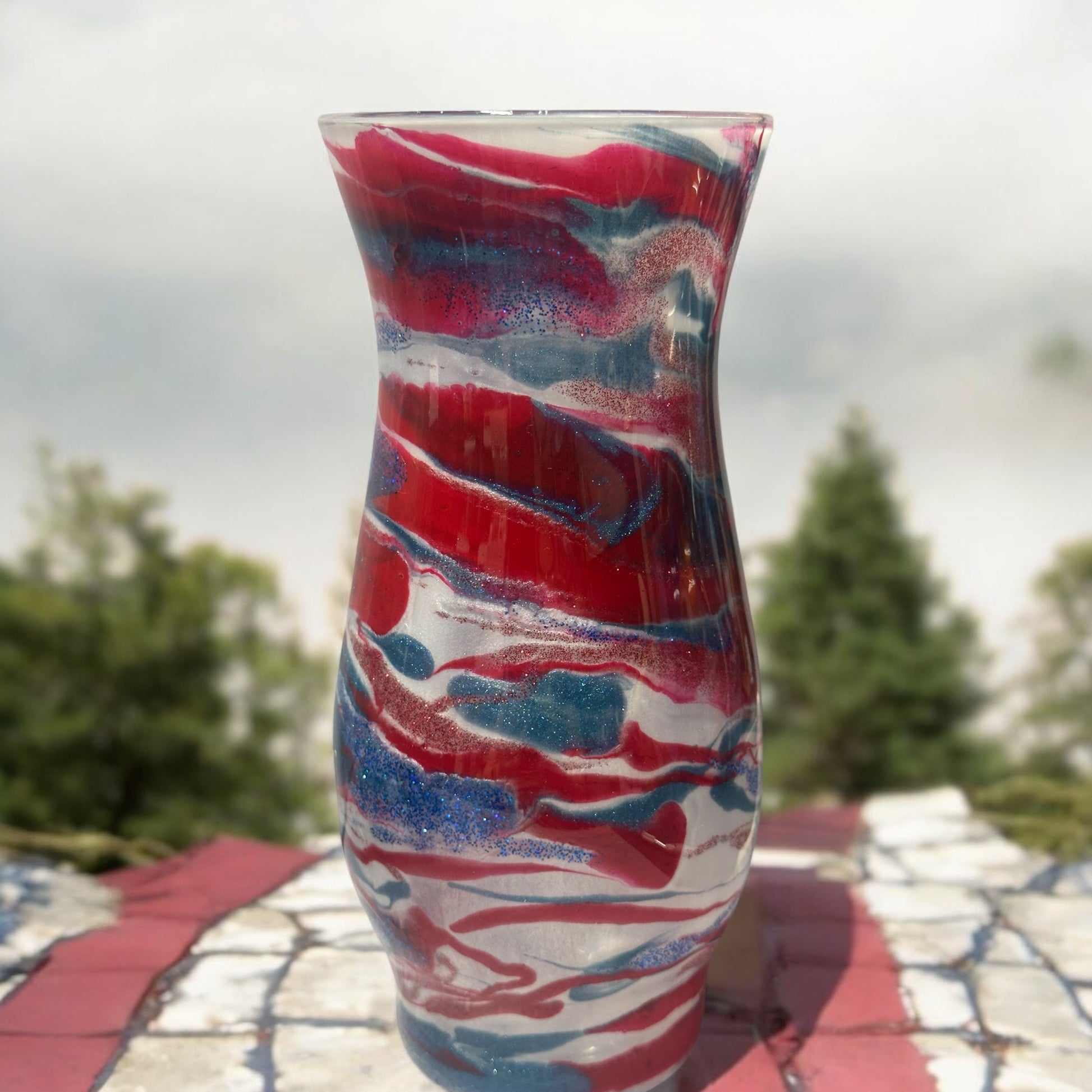 Red, White and Blue 8.5 inch tall vase